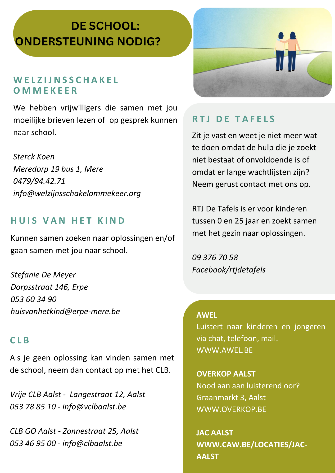 kinderen, onderwijs School: ondersteuning nodig? Datum: 1 september 2025Auteur: Welzijnsschakel Ommekeer vzw Delen: Share op Facebook (Opent in een nieuw venster) Facebook Gerelateerd
