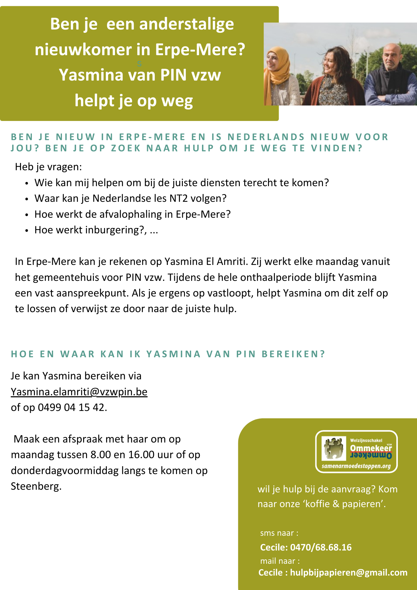 babbels, hulpverlening, nieuwkomer Ben je een anderstalige nieuwkomer in Erpe-Mere? Yasmina van Pin vzw helpt je op weg! Datum: 25 februari 2026Auteur: Welzijnsschakel Ommekeer vzw Gerelateerd