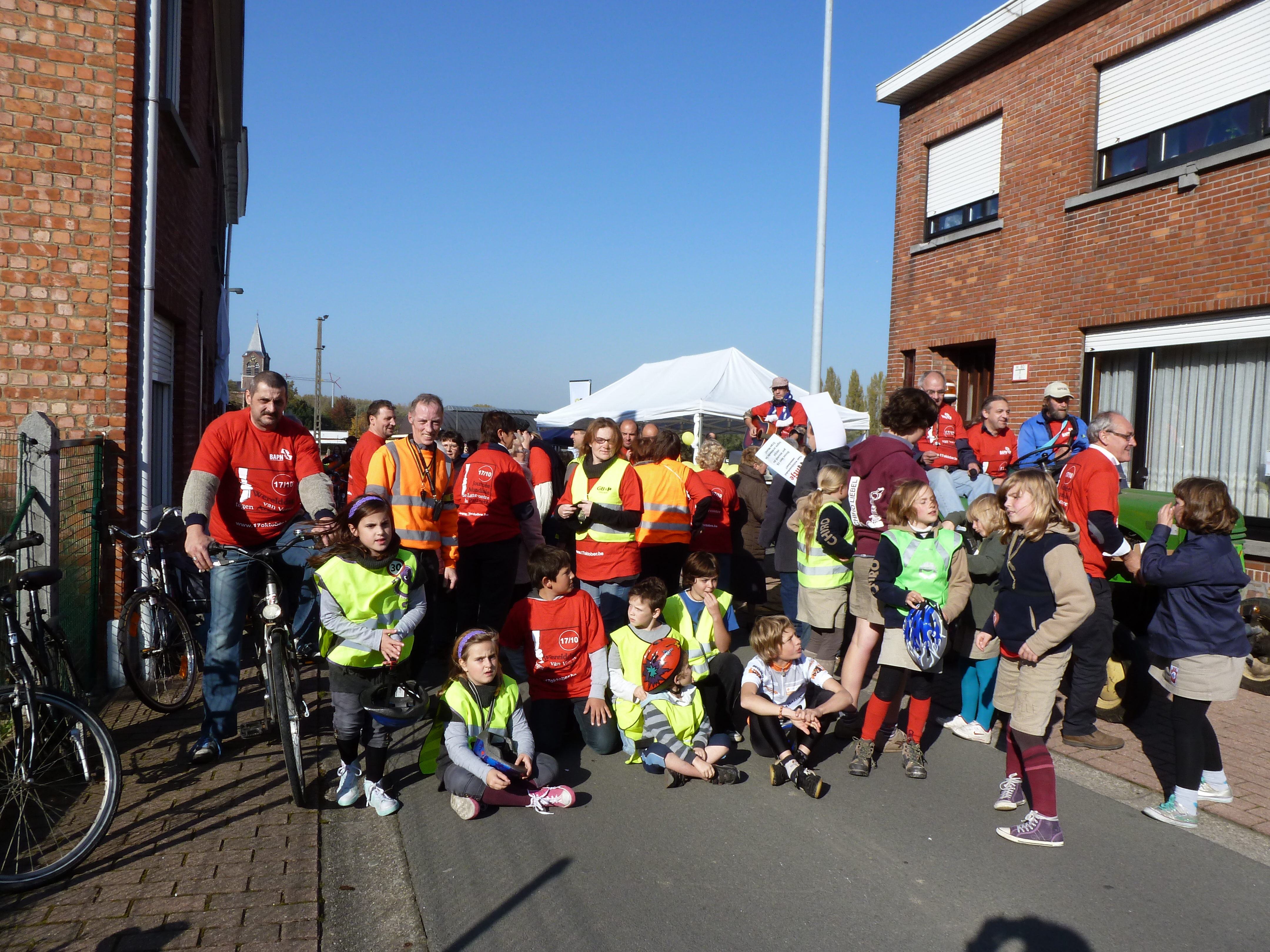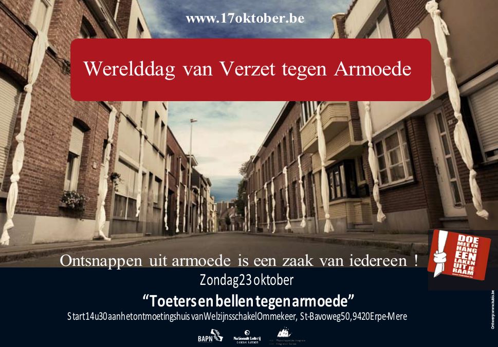 We organiseren deze fietsoptocht in het teken van de actie 17 oktober, de internationale dag van verzet tegen armoede. Armoede is een onrecht en er aan ontsnappen is een zaak van iedereen! We willen vandaag zoveel mogelijk mensen wakker maken rond armoede! Met toeters en bellen willen we armoede in Erpe-Mere in de kijker zetten!