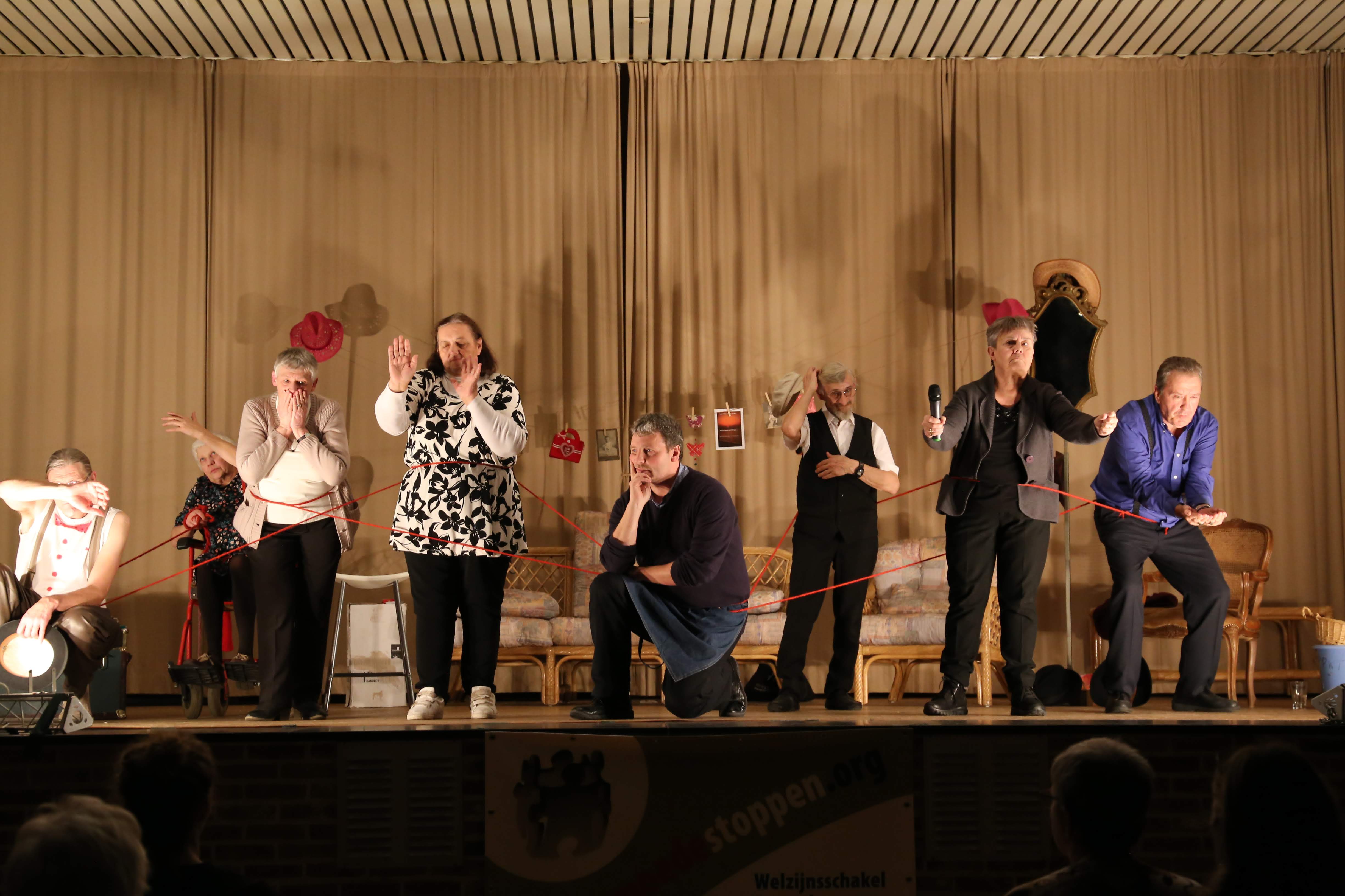 Dinsdagavond 11 december hebben meer dan 120 mensen deelgenomen aan de voorstelling ‘Niet met grote woorden’ in Bambrugge. Onze oudergroep bracht zelfgemaakte gedichten rond onderwijs en armoede en stelde pistes voor om onderwijs toegankelijker te maken. Welzijnsschakel Kras stond in voor het mooie sociaal artistiek theater. De acteurs stonden met hun eigen verhaal, heel naturel en met oprecht enthousiasme op de planken. Ze brachten hun eigen dagdagelijkse ervaringen met armoede en uitsluiting, maar er was ook plaats voor plezier, humor en kracht. Ze hielden ons een spiegel voor, hoe we naar mensen in armoede kijken en hoe ze uitsluiting ervaren in hun omgeving. Ze deden een appel voor het recht op een menswaardig leven voor iedereen! Het was bovenal een groep mensen die sterk aan elkaar hangt en de zaal met hun warme menselijke boodschap hebben besmet in deze tijden van kilte!